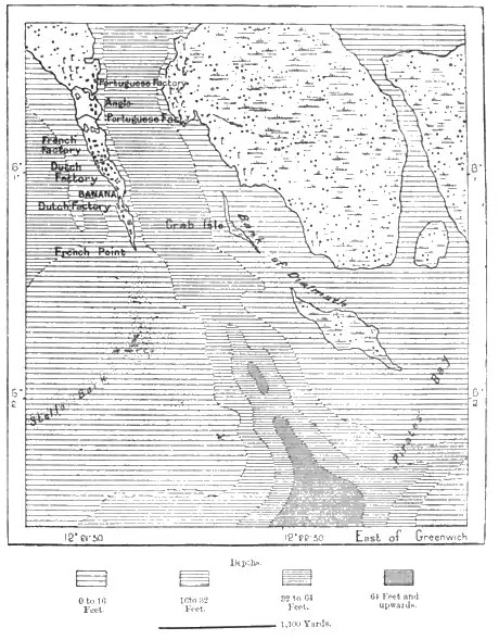 of standing at too great an elevation above the stream, without the hoped-for advantage of a salubrious climate. Owing to the velocity of the current at this point, most of the vessels plying on the river are also obliged to stop a little farther down at Matadi, or the "Rock," on the opposite side. Below Matadi follow the