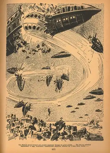 The Skylark darted forward and crashed completely through the great airship.... She was an embodied thunderbolt; a huge, irresistible, indestructible projectile, directed by a keen brain inside....