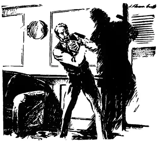 went forward along the promenade deck. He passed SeƱor Ortiz, ex-Minister of the Interior of the Argentine Republic. Ortiz bowed to him punctiliously, but Bell had a sudden impression that the Argentine's face was gray and ghastly. He checked himself and looked back. The little man was climbing the companion-ladder toward the wireless room.