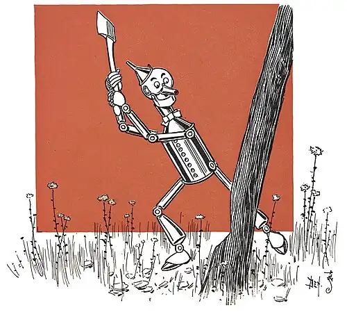 But it takes time to make a raft, even when one is as industrious and untiring as the Tin Woodman, and when night came the work was not done. So they found a cozy place under the trees where they slept well until the morning; and Dorothy dreamed of the Emerald City, and of the good Wizard Oz, who would soon send her back to her own home again.