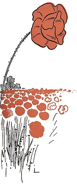 On and on they walked, and it seemed that the great carpet of deadly flowers that surrounded them would never end. They followed the bend of the river, and at last came upon their friend the Lion, lying fast asleep among the poppies. The flowers had been too strong for the huge beast and he had given up, at last, and fallen only a short distance from the end of the poppy-bed, where the sweet grass spread in beautiful green fields before them.
