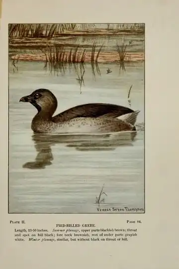 Length, 13·50 inches. Summer plumage, upper parts blackish brown ; throat and spot on bill black ; fore neck brownish, rest of under parts grayish white. Winter plumage, similar, but without black on throat or bill.