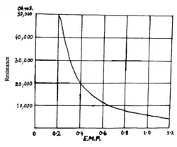 Fig. 58. Curve showing the Variation of Resistance with Increasing E. M. F.