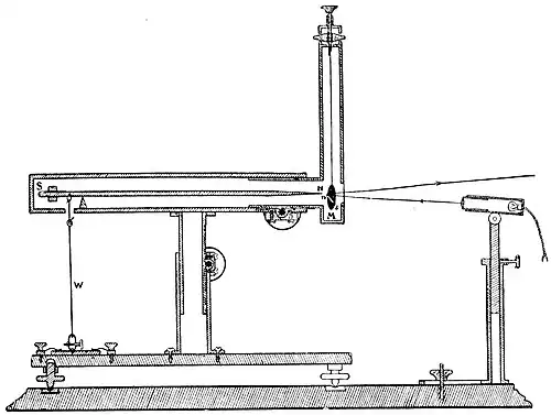 light reflected from the attached mirror. The sensitiveness of the apparatus is very greatly enhanced by the employment of a perfect system of astatic needles.