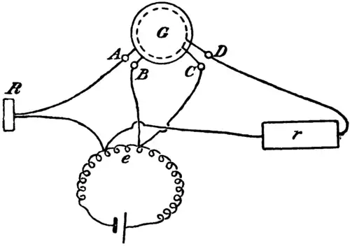 Fig. 11. G, the differential galvanometer; R, the receiver; r, the resistance box.