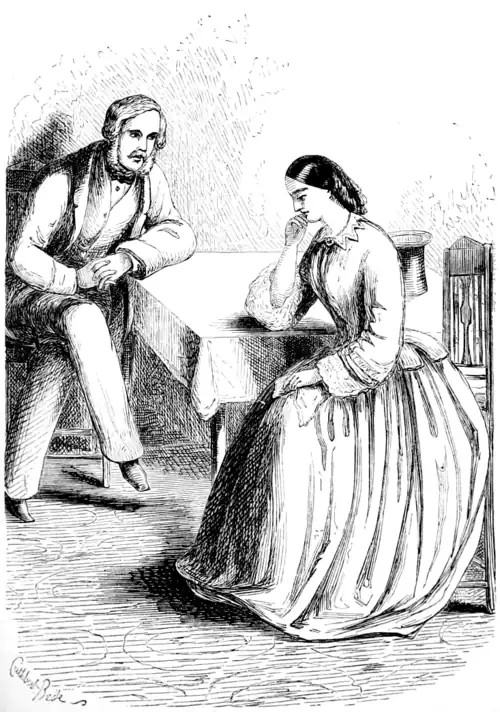 ‘As the young lady’s memory reverted to the scenes of the past, she leant her head upon her hand and fell a-musing.’–Page 94.