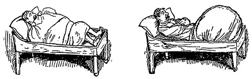 He reflects that a "boneless wonder" or a "man serpent" would be comfortable enough in this bed, and wishes that he had been brought up as a contortionist. If he could only tie his legs round his neck, and tuck his head in under his arm, all would yet be well.