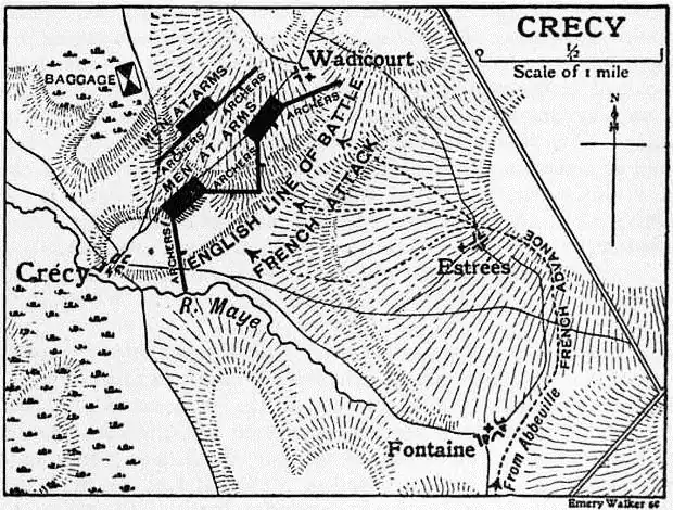 26th of August 1346 by the English under Edward III. over the French of King Philip of Valois. After its campaign in northern France, the English army retired into Ponthieu, and encamped