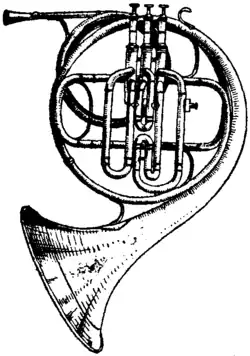 - ↑ Ibid., 1817, p. 814, by F. Schneider, and Dec. p. 558; 1818, p. 531. An announcement of the invention and of a patent granted for the same for ten years, in which Blümel is for the first time associated with Stölzel as co-inventor. See also Caecilia (Mainz, 1835), Bd. xvii. pp. 73 seq., with illustrations, an excellent article by Gottfried Weber on the valve horn and valve trumpet.