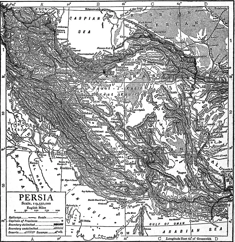 commissioners, in conformity with the treaty of Erzerum, leaving doubtful localities to be settled in future. The Russian government agreed to this proposal, and the work of surveying the country from Mt Ararat to the Persian Gulf was then undertaken. When this was done the preparation of a map, embracing territory 700 m. in length by 20 to 40 m. broad, was put in hand, and this work lasted from November 1857 till March 1865, when the Porte was informed in May of that year that “in the opinion of the mediating Powers, the future line of boundary between the respective dominions of the sultan and the shah was to be found within the limits traced on the map; that the two Mahommedan governments should themselves mark out the line; and that in the event of any differences arising between them in regard to any particular locality, the points in dispute should be referred to the decision of the governments of England and Russia.” This boundary has remained unsettled, and disputes have frequently arisen between the Turkish and Persian governments with regard to their respective claims to land (Hertslet, Persian Treaties). In the autumn of 1907 Turkish troops occupied not only “doubtful localities” but also adjoining lands which were indisputably Persian territory. The want of a determined line of demarcation between the two countries may have political advantages, but is inconvenient to the geographer and most unfavourable to the cause of order and good government.