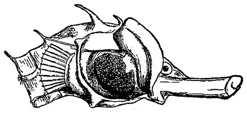 gill-cover has been pushed aside to show the interior of the gill-cavity.