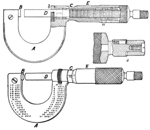 instruments, the micrometer calipers (fig. 72), made for general