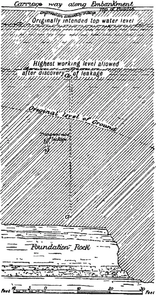 There is no reason to believe that the initial cause of such a leakage could be developed except during construction, and it is certain that once begun it must increase. Only a knowledge of the great loss of capital that has resulted from abortive reservoir construction justifies this notice of defects which can always be avoided, and are too often the direct result, not of design, but of parsimony in providing during the execution of such works, and especially below ground, a sufficiency of intelligent, experienced and conscientious supervision.