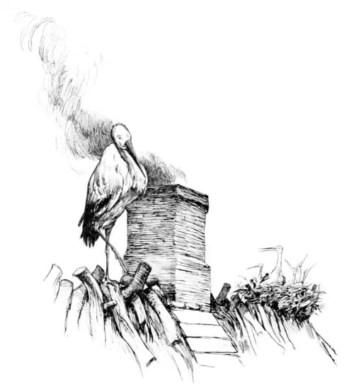 ON THE LAST HOUSE IN A LITTLE VILLAGE A PAIR OF STORKS HAD BUILT THEIR NEST.