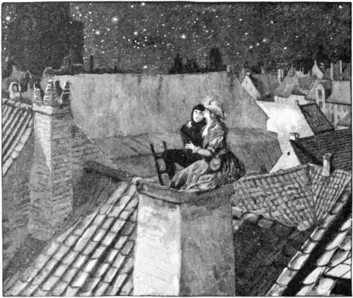 The sky with all its stars was just above their heads, and below them lay all the roofs of the city. They could see far around them, far out into the wide world. The poor shepherdess had never thought it was anything like this. She leaned her little head against her chimney-sweep, and cried till the gilding was washed off her girdle.