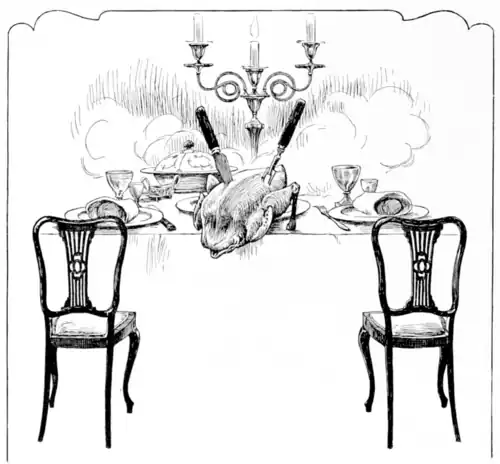 THE GOOSE JUMPED FROM THE DISH WITH KNIFE AND FORK IN ITS BACK.