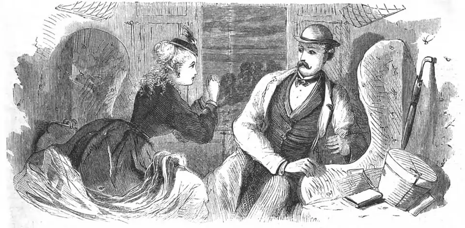 The first glance satisfied me; but, like a true Englishman, I made no demonstration of interest beyond a bow and a brief reply to the apologies and thanks uttered in a fresh young voice as the new-comer took her seat. A slender girl of sixteen or so, simply dressed in black, with a little hat tied down over golden curls, and a rosy face, lit up by lustrous hazel eyes, at once arch, modest and wistful. A cloak and a plump traveling bag were all her luggage, and quickly arranging them, she drew out a book, sank back in her corner, and appeared to read, as if anxious to render me forgetful of her presence as soon as possible.