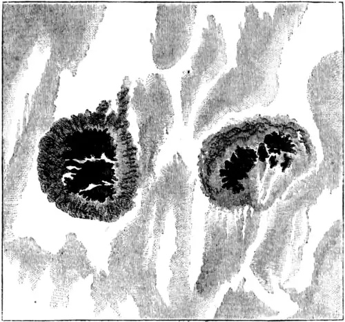 When the alarm of an eclipse is given in a Hindu village, the whole population turn out to avert the impending calamity. The black disc of the moon, encroaching upon the bright surface of the sun, is believed to be the jaws of a monster gradually eating up the latter. Tomtoms are violently sounded, the air is rent with screams of terror and shouts of vengeance; and all this uproar is made with the