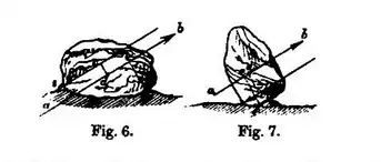 direction to , through the centre of gravity produces no disturbance of position in the "boulder stone," the extreme point of the bed preventing rotation in the first semiphase of the wave, by a force measured by , and the