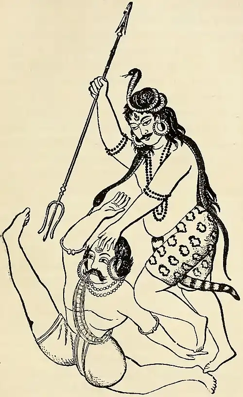 most destructive weapon was a trident : with this he slew the foe who was obnoxious to his follower."