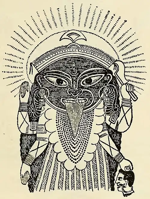 In the “Adhyatma"[1] Rāmāyana,"[2] is a legend giving quite a different origin of Kāli; the object of the writer evidently being to enhance the glory of Sita, by showing that Kāli was but a form that she had assumed. On Rāma's return from the destruction of Rāvana, he was boasting of his prowess, when Sita smiled and said, “You rejoice because you have slain