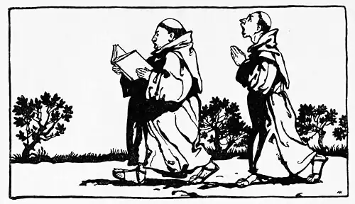 "The one in front carrying the big book is Tibraidè, he is the priest of Cell Camain, and he is the chief of those two."