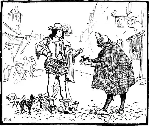 Hardly a day passed without his buying several dogsābig and little, greyhounds, mastiffs, spaniels, and lapdogs. As soon as he had bought a pretty one he was sure to see a still prettier, and then he had to get rid of all the others and buy that one, as, being alone, he found it impossible to take thirty or forty thousand dogs about with him. He journeyed from day to day, not knowing where he was going, until at last, just at nightfall, he reached a great, gloomy forest. He did not know his way, and, to make matters worse, it began to thunder, and the rain poured down. He took the first path he could find, and after walking for a long time he fancied he saw a faint light,