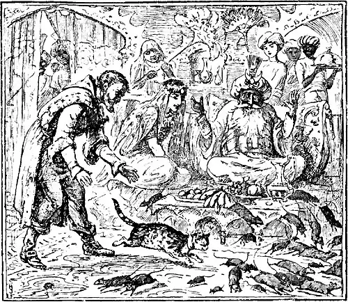 The morn had scarcely dawned when Mr. Fitzwarren arose to count over the cash and settle the business for that day. He had just entered the counting-house, and seated himself at the desk, when somebody came, tap, tap, at the door. ‘Who’s there?’ said Mr. Fitzwarren. ‘A friend,’ answered the other. ‘What friend can come at this unseasonable time?’ ‘A real friend is never unseasonable,’ answered the other. ‘I come to bring you good news of your ship Unicorn.’ The merchant bustled up in such a hurry that he forgot his gout; instantly opened the door, and who should be seen waiting but the captain and factor, with a cabinet of jewels, and a bill of lading, for which the merchant lifted up his eyes and thanked heaven for sending him such a prosperous voyage. Then they told him the adventures of the cat, and showed him the cabinet of jewels which they had brought for Mr. Whittington. Upon which he cried out with great earnestness, but not in the most poetical manner: