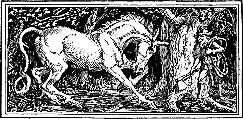 pretended to be asleep, began to call out in a clear voice: ‘My lad, make that waistcoat and patch those trousers, or I’ll box your ears. I have killed seven at a blow, slain two giants, led a unicorn captive, and caught a wild boar, then why should I be afraid of those men standing outside my door?’ The men, when they heard the tailor saying these words, were so terrified that they fled as if pursued by a wild army, and didn’t dare go near him again. So the little tailor was and remained a king all the days of his life.