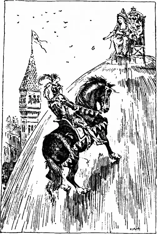 shone and glistened when he was a long way off. Again the other knights called to him, and said that he might just as well give up the attempt to ride up the glass hill, for it was useless to try; but the knight paid no heed to that, but rode straight away to the glass hill, and went still farther up than the knight in copper armour had gone; but when he had ridden two-thirds of the way up he turned his horse round, and rode down again. The Princess liked this knight still better than she had liked the other, and sat longing that he might be able to get up above, and when she saw him turning back she threw the second apple after him, and it rolled into his shoe, and as soon as he had got down the glass hill he rode away so fast that no one could see what had become of him.