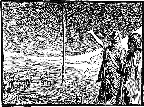Then the Fairy sent for her treasurer, to whom, when she came, she said: ‘Nourgihan’—which was her name—‘bring me the largest pavilion in my treasury.’ Nourgihan returned presently with the pavilion, which she could not only hold in her hand, but in the palm of her hand when she shut her fingers, and presented it to her mistress, who gave it to Prince Ahmed to look at.