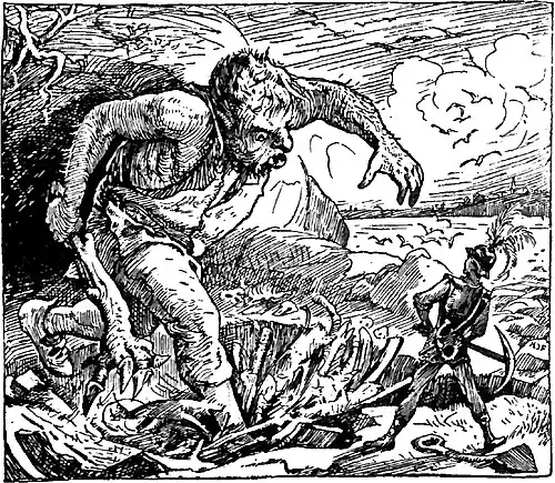 Soon after the giant went to fetch his brother, who was likewise a giant, to take a meal off his flesh; and Jack saw with terror through the bars of his prison the two giants approaching.