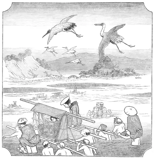 Japanese Landscape. Fording a River. (Fac-simile.)