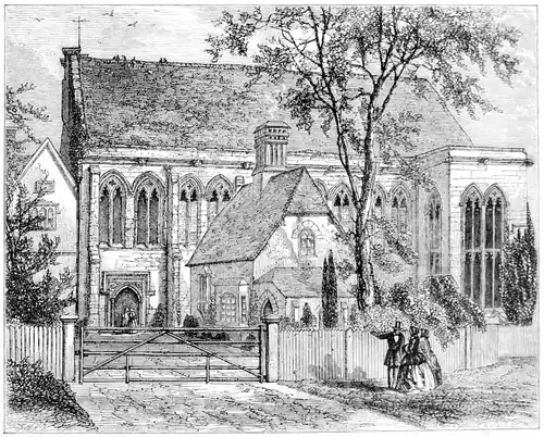 There is little to attract attention in the quiet rural village of Eltham, whose name of Eald-ham, the old home, takes us back to the memory of a time long since past. Its street is now no more rendered lively by the cheerful bugle and the rattling wheels of the coaches to Folkstone and Maidstone; but its inn-gardens, with games of Mississippi and bowls, attract still the holiday makers of Woolwich and Charlton, on bright sunny afternoons, in summer and autumn. The training and breeding stables of Messrs. Blenkiron, often filled with as many as 500 horses, many of them of great value, and the passage of artillery on the march, may be reckoned among the chief objects of interest and enlivenment in the little village. Its church of St. John Baptist boasts a shingled spire, and a few architectural remains, in the north aisle, comparatively ancient, by contrast to the ugly brickwork and modern windows, which constitute the large portion of the structure. The interior will not repay inspection, but there are some graves and monuments that deserve a mention. Here lies memorable John Dogget, co-manager with Wilks of Drury Lane theatre, for whom Congreve wrote stage-parts, and whose name is still preserved by the badge and coat which he offered as an annual prize for watermen, in loyal commemoration of the accession of George I. Sir W. James, of Severndroog fame; and Bishop George Horne, well known for his Commentary on the Psalms, are both buried here.