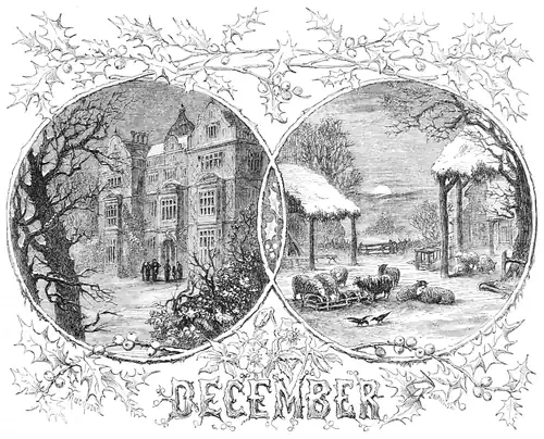 Interesting as it is to us to look back, what would it have been to those Londoners to see forward into our days! How wonderful a mere grocer’s shop would have appeared, with its variety of imported fruits, its firkins of butter and tall piles of cheeses, with sprigs of holly everywhere! Yet more astonishing would have been the vision of the fat beasts at Baker Street, to men whose only idea of winter meat was the flesh of lean cows or tough bullocks, salted down in autumn, for want of keep for the winter! They had their game, their boar’s heads, and other things; but the prime beef of our century—fat and juicy in midwinter—would have been something miraculous in their eyes. So would any Christmas market, in any provincial town, with its evergreen adornments, its neat and clean stall-keepers, displaying their heaps of provisions, where the outpost of fish is merely introductory to a great camp full of meat, poultry, game, fruit and flowers. Yes, flowers,—in great variety! Such a vision would have made them fancy that men had grown wise enough to strip the seasons of their drawbacks, making winter as the summer.