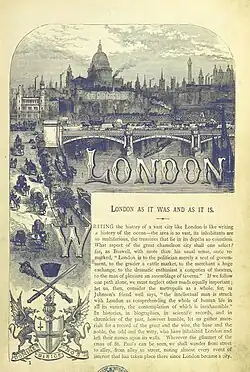 WRITING the history of a vast city like London is like writing a history of the ocean — the area is so vast, its inhabitants are so multifarious, the treasures that lie in its depths so countless. What aspect of the great chameleon city shall one select? for, as Boswell, with more than his usual sense, once remarked, "London is to the politician merely a seat of government, to the grazier a cattle market, to the merchant a huge exchange, to the dramatic enthusiast a congeries of theatres, to the man of pleasure an assemblage of taverns." If we follow one path alone, we must neglect other roads equally important; let us, then, consider the metropolis as a whole, for, as Johnson's friend well says, "the intellectual man is struck with London as comprehending the whole of human life in all its variety, the contemplation of which is inexhaustible." In histories, in biographies, in scientific records, and in chronicles of the past, however humble, let us gather materials for a record of the great and the wise, the base and the noble, the odd and the witty, who have inhabited London and left their names upon its walls. Wherever the glimmer of the cross of St. Paul's can be seen, we shall wander from street to alley, from alley to street, noting almost every event of interest that has taken place there since London became a city.