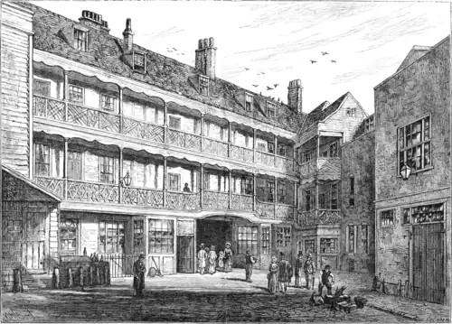 THE INNER COURT OF THE "BELLE SAUVAGE" (From an Original Drawing in Mr. Crace's Collection.)