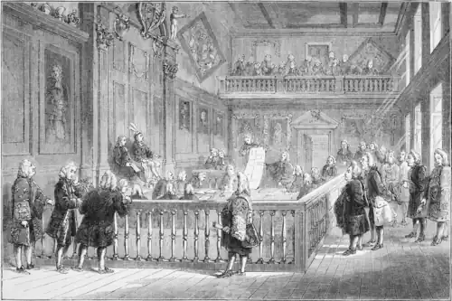 THE LAST HERALDIC COURT. (From an Old Picture in the Heralds' College; the Figures by Rowlandson, Architecture by Wash.)