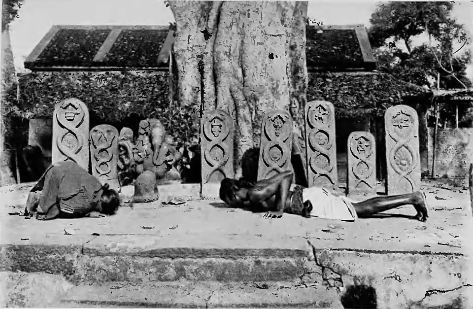 PRAYING FOR OFFSPRING BEFORE LINGAM, SNAKE-STONES, AND FIGURE OF GANÄ’SA.