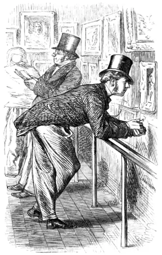 One Saturday morning in the spring of the present year, fortified by a ticket from Messrs. Smith of Bond Street, “et quelque diable aussi me poussant,” I strolled down St. James’s and into Bridgewater House, to look at Lord Ellesmere’s pictures. I looked and was looked at; for I confess I had on peg-tops of a most aggravated form, and I saw several fat old females (with small hampers on their arms) seated on the noble Earl’s benches, examining my left ankle with the right eye, and my right ankle with the left eye, and the Raffaelles and Titians of course with the other eye.