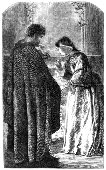 “Through all these weary months,” says the listener on the hearth, — and his head sinks lower at the cold, dead tones, — “through all these weary months, there has been that within which told me you would one day know the wrong you did. Whatever there may have been to forgive, it is forgiven, long ago. The ring which you crushed is here. I have kept it for you; will you take it?”