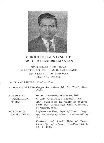 CURRICULUM VITAE OF DR. C. BALASUBRAMANTAN