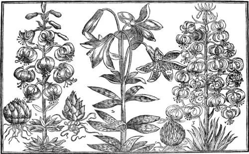 1 Martagon flore albo. The white Martagon. 2 Martagon ſiue Lilium Canadenſe maculatum. The ſpotted Martagon, or Lilly of Canada. 3 Martagon Pomponeum. The Martagon Pompony, or early red Martagon.