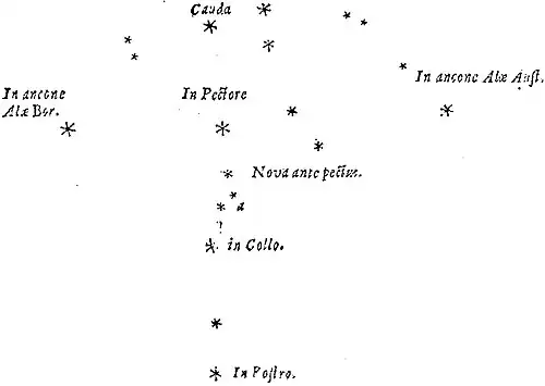 The Figure of the Stars in the Constellation of Cygnus; together with the New Star in it, discover'd some years since, and very lately seen by M. Hevelius again.