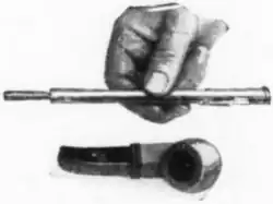 Contained in a holder which is carried in the pocket, a pipe-cleaning set now on the market is kept from soiling the clothing and in position for use at any time. It consists of two tools, one for the bowl and the other for the stem.