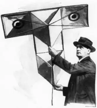 Fashioned on the lines of a monoplane, a new type of kite has been introduced by Perry T. W. Hale, all-American football star of 1900, who was blinded in an explosion some twelve years ago. It requires no tail and is said to be extremely popular with kite enthusiasts.