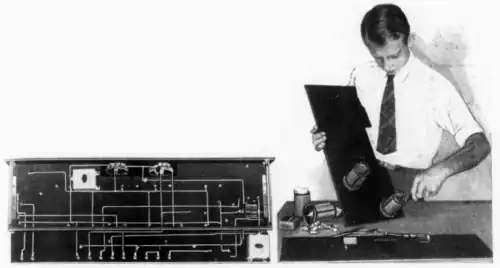ble to the grid terminal of the tube socket to which it is to be fastened. It will also be noted that, in many cases where a lead should go through the subpanel, a special hole has not been drilled, but the lug has been joined to a soldering lug placed under a near-by mounting screw and the circuit picked up from the screw under the subpanel, thereby simplifying the operation.