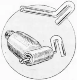 A large percentage of paste used in tubes, such as toothpaste, shaving cream. glue, etc., is wasted, as it cannot be entirely squeezed out with the fingers alone. A device such as the one shown in the drawing will prevent this waste and can be made as follows: A short length of metal rod is slit down one end with a hacksaw. 11⁄2 or 2 in. being sufficient for the average tube. The other end is turned over and bent to form a handle. The slitted end of the rod is slipped over the flat end of the tube and the handle is turned. This will force all of the contents from the tube. When the tube is entirely rolled up, the crank may be pulled out and used for other tubes.—L. J. Flugel, Chicago.