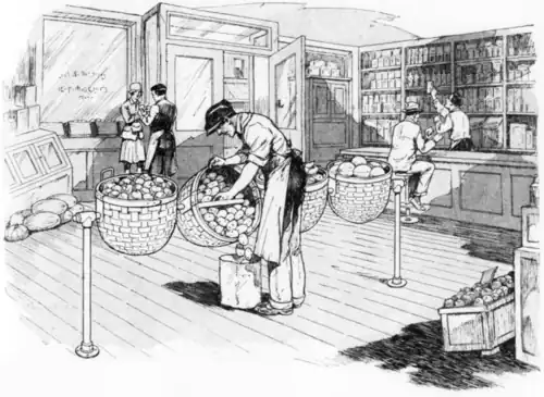 Pivoted Containers for Vegetables in Grocery Store Make It an Easy Task to Transfer Them into Peck and Other Measures or to Bags