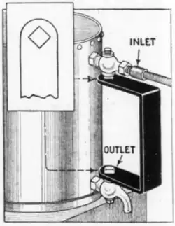 A method of connecting two cocks so that one handle can be used to control both is shown in the accompanying drawing. This idea is being successfully used in connection with filling an inclosed tank with the correct amount of liquid required to make a mixture used in the printing business. The inlet cock is attached to the tank upside down, at the top, and the outlet in an upright position at the bottom. The handle is a piece of flat steel bent at right angles at both ends with square holes to fit over the squares on the plugs. Sockets are brazed to the tank to receive the cocks, one of these being brazed in place with the wrench assembled. When this is done, one faucet must be open and the other shut. Thus, if the inlet is open the tank will be filled, and when the outlet is open the inlet is automatically closed. As soon as the tank is emptied the outlet is closed, which automatically opens the inlet again, filling the tank ready for the next measure.―Harry Moore, Montreal, Can.